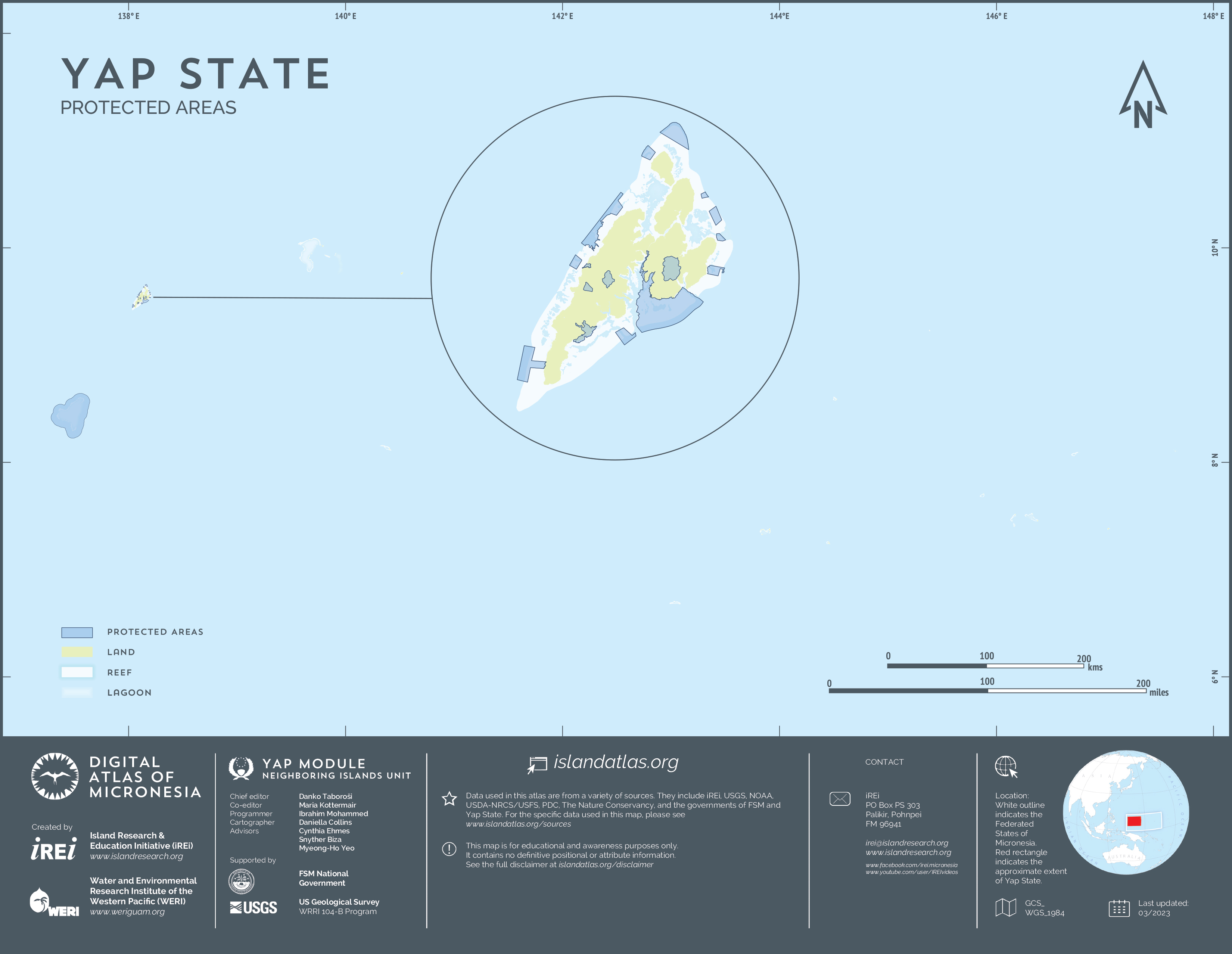 This map shows the Areas of Biological Significance (ABS) in and around the Neighboring Islands of Yap. The dataset was created by The Nature Conservancy. A subset to show only Yap State was created by the Island Research & Education Initiative (iREi) (2023). The polygons in the data are intended to capture those areas that represent the wide range of biodiversity features in the marine and terrestrial areas of FSM. They capture expert knowledge from the FSM Blueprint project. They are used to guide conservation planning and projects in FSM, and ultimately to help establish conservation areas.